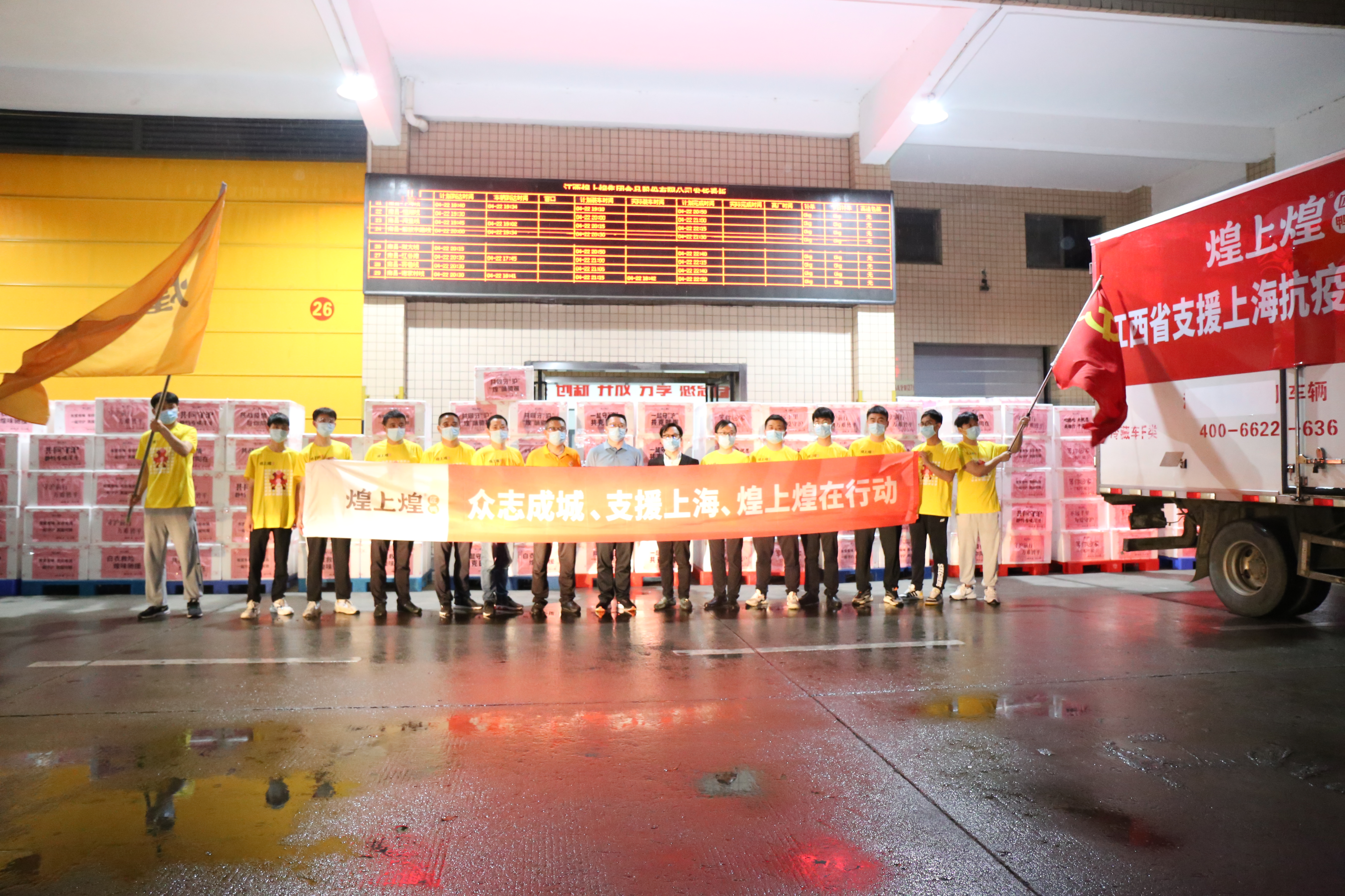 我們又來了!作為江西龍頭企業、醬鹵行業第一股,煌上煌運送愛心物資的冷鏈物流車再一次疾馳在通往上海的高速路上。